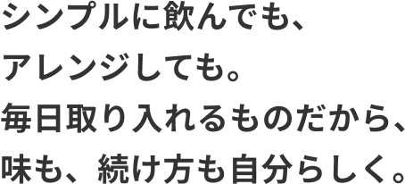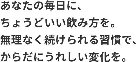 毎日飲むことで、体に必要な栄養をバランスよく補い、いつまでも自分らしい暮らしを楽しんでいただけるようお手伝いします。安心して毎日の健康習慣に取り入れてください。